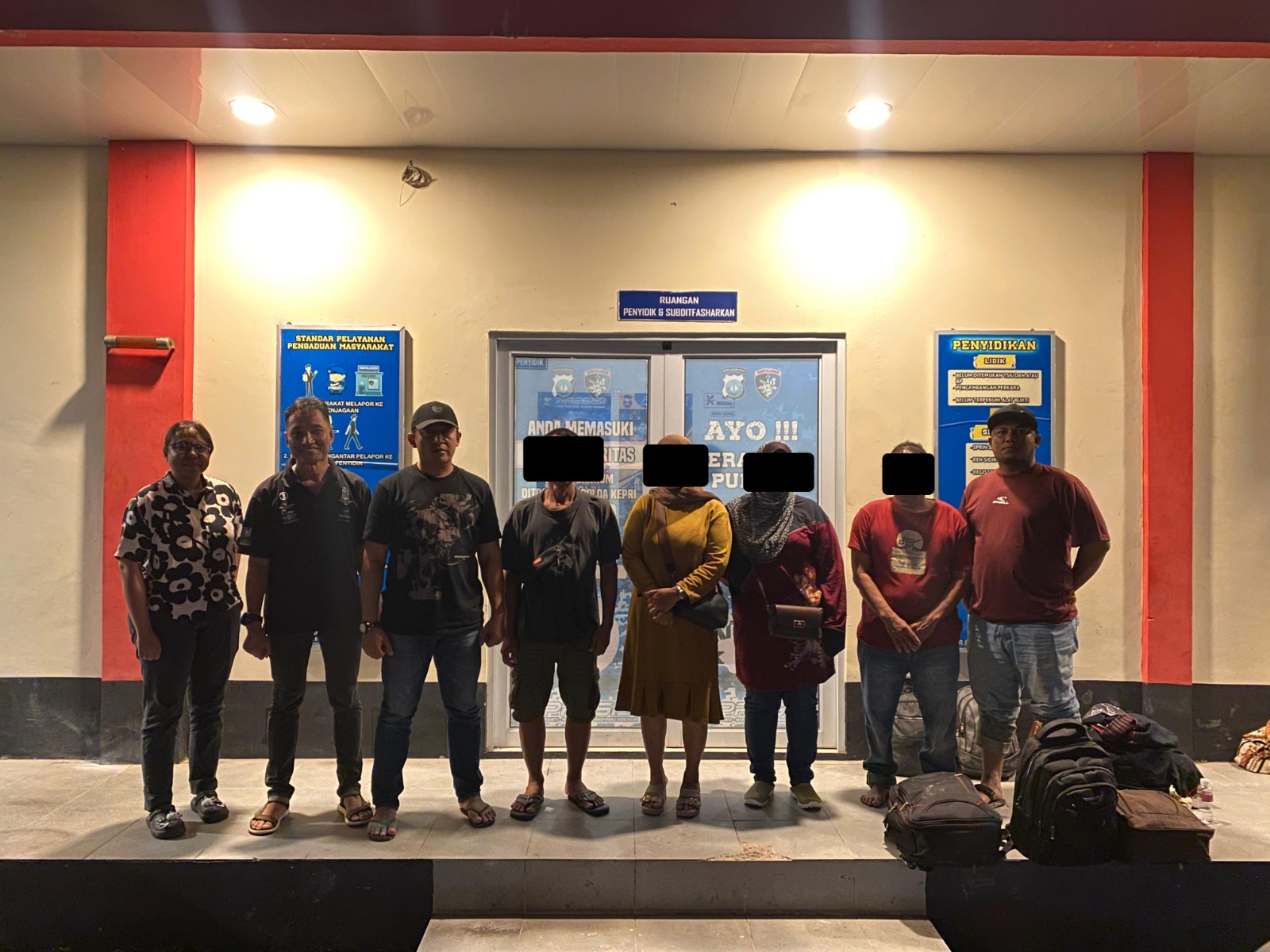 “Kemudian tim melihat sebuah mobil Daihatsu Terios yang menjemput orang tersebut, selanjutnya tim melakukan pembuntutan hingga ke pinggir Jalan Raya Marina City dan tim melihat mobil tersebut berhenti dan terlihat beberapa orang turun. Tim melakukan pemeriksaan dilokasi dan beberapa orang melarikan diri selanjutnya dilakukan pengejaran hingga sebanyak 4 orang beserta 1 orang sopir berhasil diamankan. Korban dan tersangka beserta barang bukti dibawa ke Mako Ditpolairud Polda Kepri untuk pemeriksaan lebih lanjut.” Jelas Dirpolairud Polda Kepri Kombes Pol Trisno Eko Santoso, S.I.K., melalui Kabidhumas Polda Kepri Kombes. Pol. Zahwani Pandra Arsyad, S.H., M.Si.