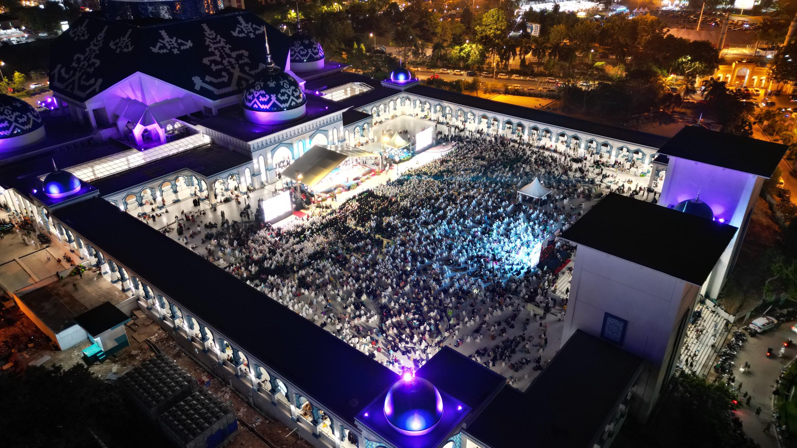 Sejak sore, area masjid dipenuhi oleh ribuan jemaah yang dengan penuh semangat mengikuti acara. Setelah shalat Isya’, rangkaian kegiatan dilanjutkan dengan perayaan Maulid Nabi Muhammad SAW. Suasana semakin khusyuk dengan lantunan shalawat Nabi yang indah di plaza masjid.
